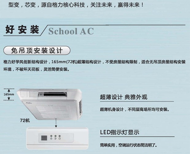 首页 >> 产品展示 >> 家用空调 >> 特种空调 >> 好学风(免吊顶式天井机)
